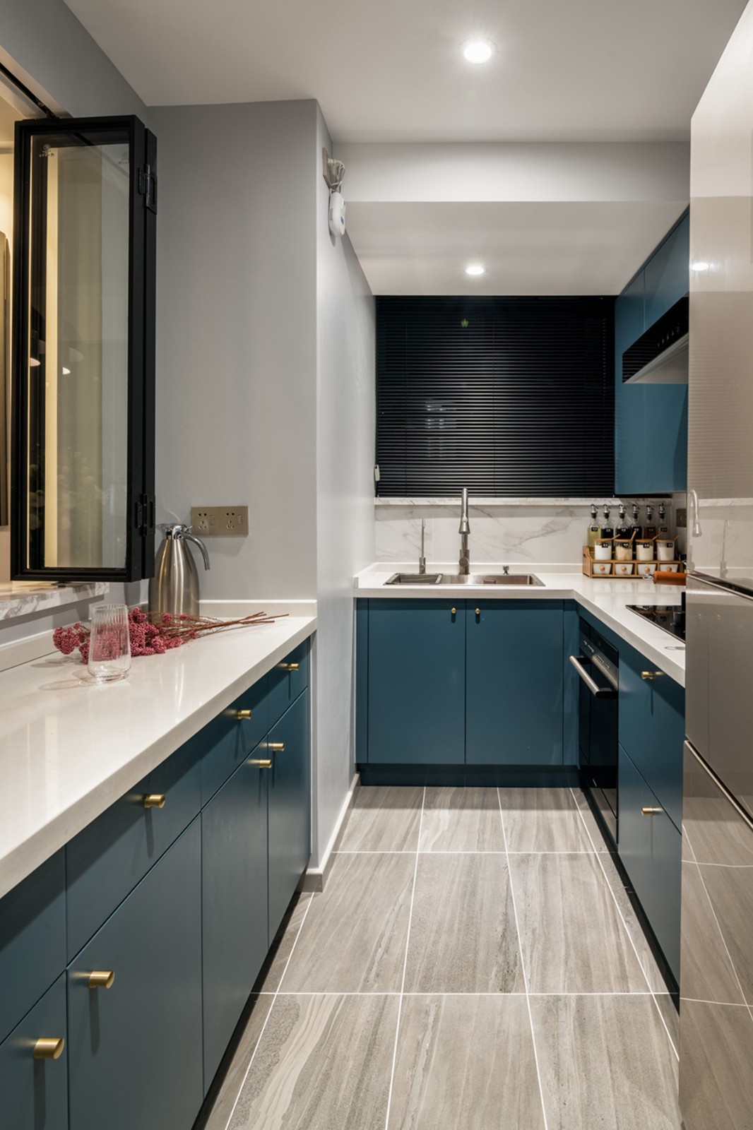 家裝設計餐廳裝修效果圖,餐廳和廚房之間的折疊窗,保持了空間的通透性。在日常生活里也起到了便捷的功能,打開了廚房和餐廳的交流。