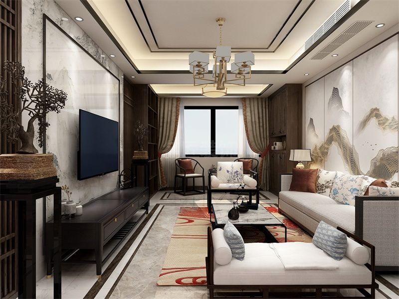 安順智業(yè)公寓三居新中式風格裝修效果圖