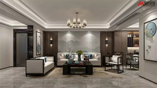 新中式核心在超越傳統進行創新創作,它可以兼容北歐,美式、簡歐、地中海等任何一種風格。也帶著業主的想法為房子打下自己的烙印,令空間既有中式風格的同時又不失時尚的元素。
