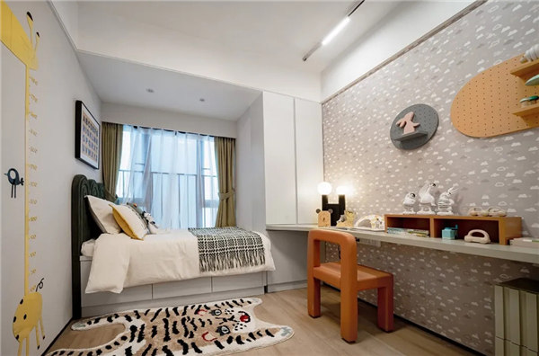 兒童房給人以溫柔寧靜的舒適感,動物元素擺件飾物給空間增添靈動。