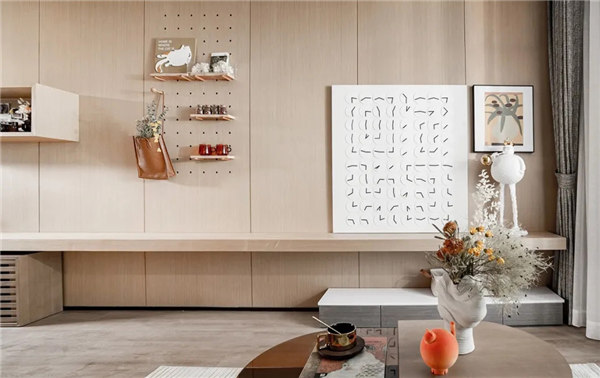 客廳化繁為簡,擯棄過多修飾,大面積原木色與白色結合,給人干凈淡雅之感,古樸典雅且獨具匠心的淺色原木家具,讓整個家居氛圍都顯得特別的溫馨靜雅。