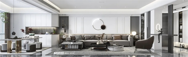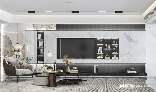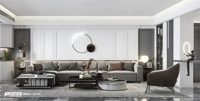 客廳黑白灰為主色調,使得整體空間產生豐富的層次感,適當的留白,在這種現代美學的基礎上進行藝術化的改造。