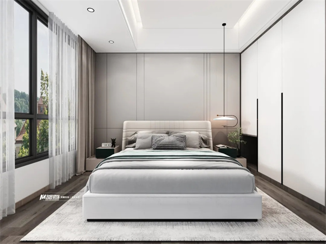 當清晨醒來,窗外還有幾縷陽光透過紗窗照射進來,如此春意的設(shè)計手法把空間與自然,刻畫得栩栩如生