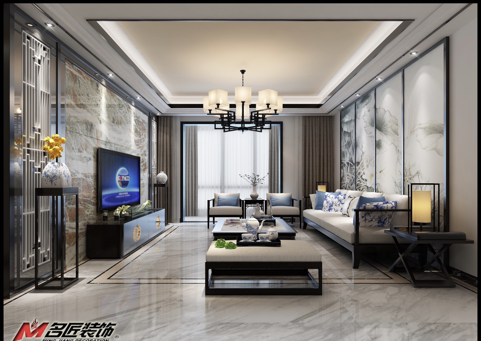 佛山同濟廣場四居新中式風格裝修效果圖