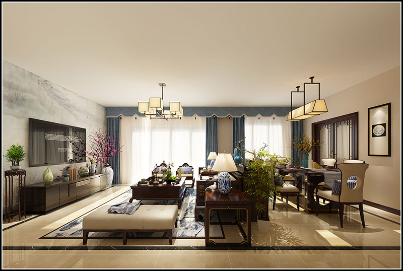 惠州101-200平米新中式風格榮泰河庭家裝設計效果圖