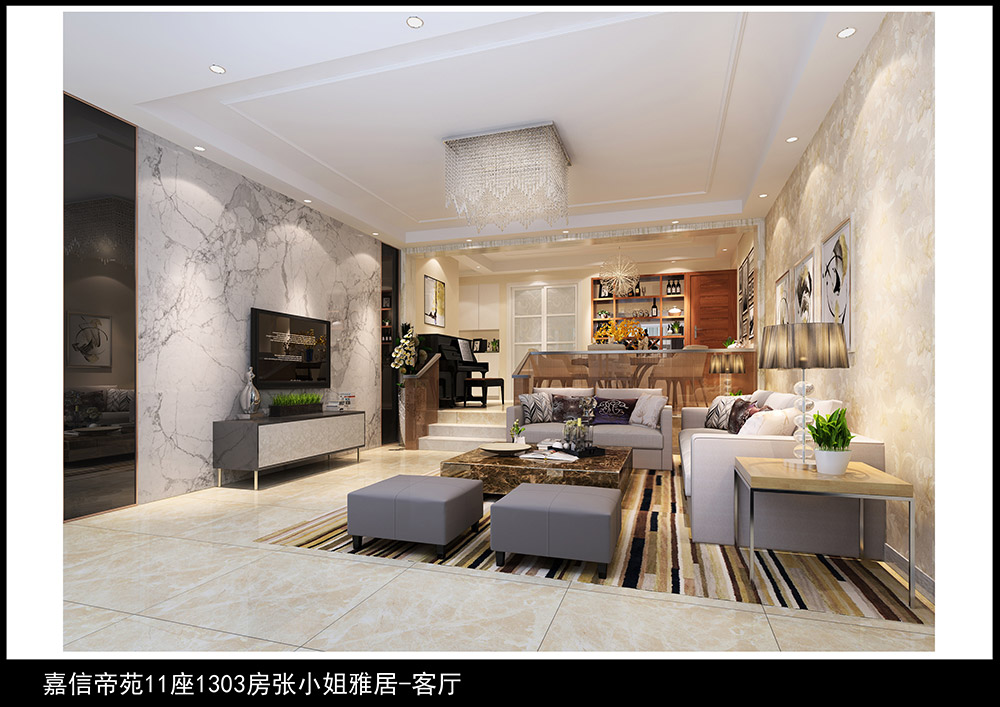 佛山嘉信帝苑復(fù)式現(xiàn)代簡約風(fēng)格裝修效果圖