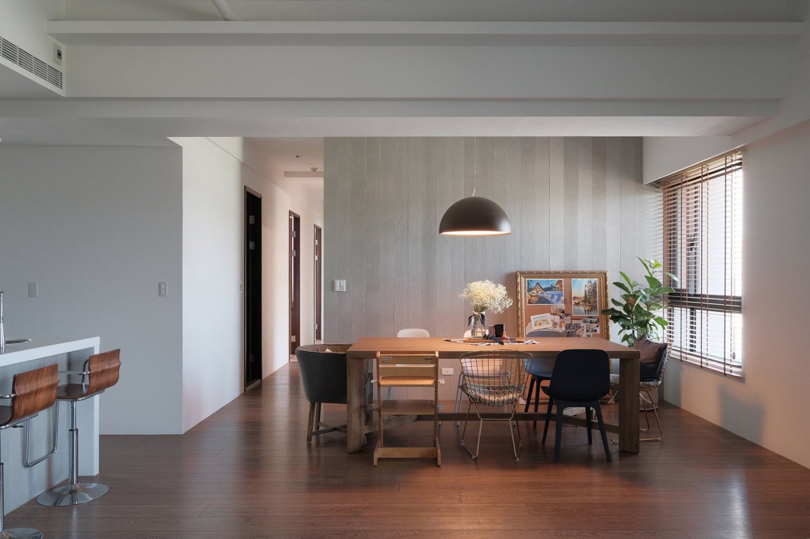 室內(nèi)餐廳裝修效果圖,內(nèi)嵌式餐廳柜,收納日常使用的餐廳物品,錯(cuò)落有致的格子,更是一種簡約的美。