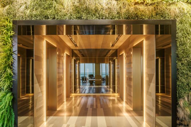 兩間餐廳的入口處迎面一道寬大的綠色植物墻,采用多種當(dāng)?shù)氐纳衬参锲床宸N植,別具一格,精心營(yíng)造出一處令人備感愜意綠洲空間。