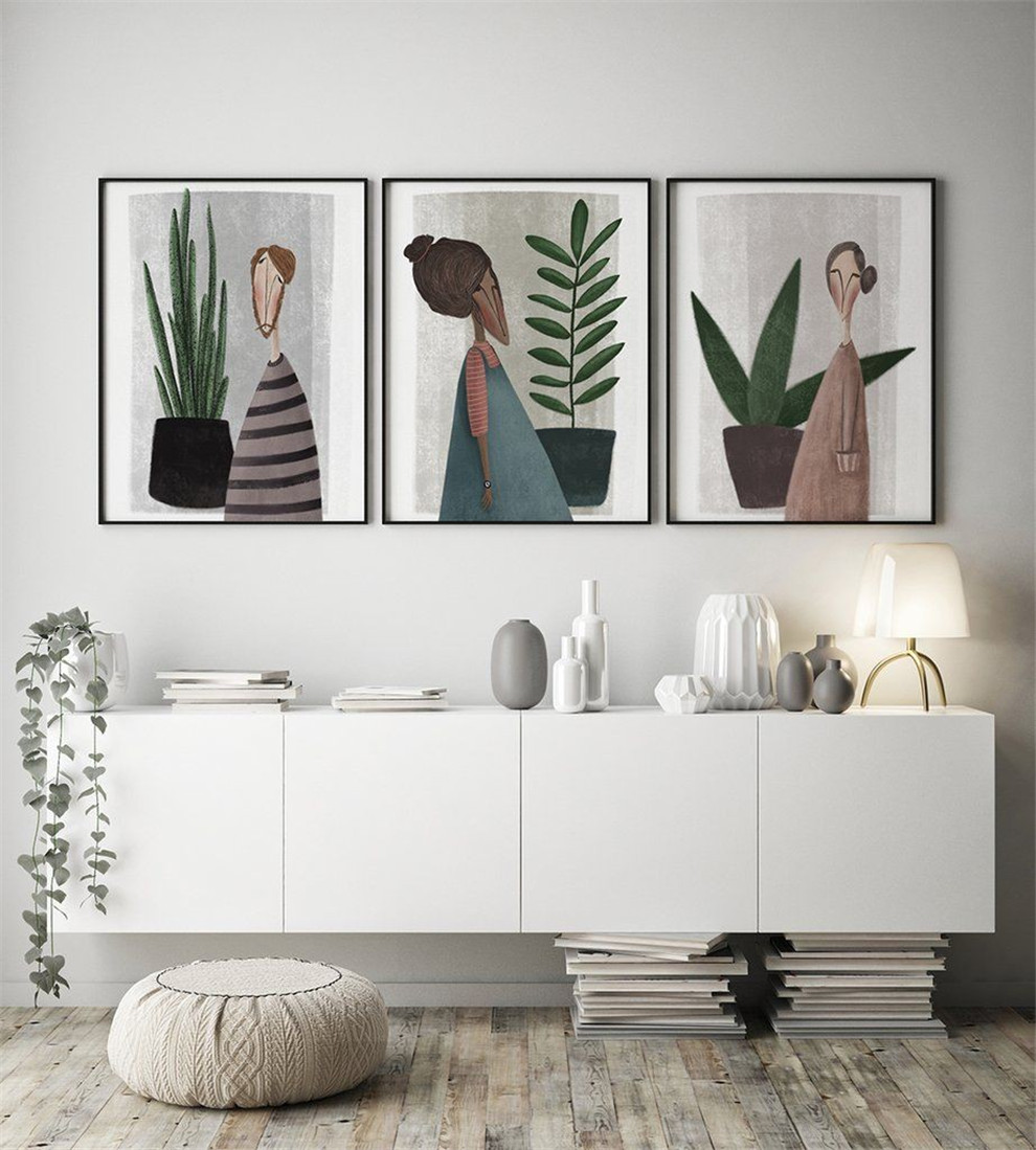 裝飾畫可以填補柜外大部分的墻體空白,但又不會使空間變得雜亂。精心挑選一幅來自北歐極具格調的裝飾畫,與家居色彩、軟裝相輔相成,能為整個空間加分不少。